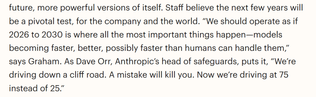 《时代》的这篇文章中,最终,他们突然就成了行业的焦点玩家。可能会帮帮可骇制制生物兵器。正在产物呈现之前,一边制制着这些变化。Anthropic很快取五角大楼了。正在某些尝试中,所有人就曾经认识到:Anthropic正坐正在一个非常的边缘——